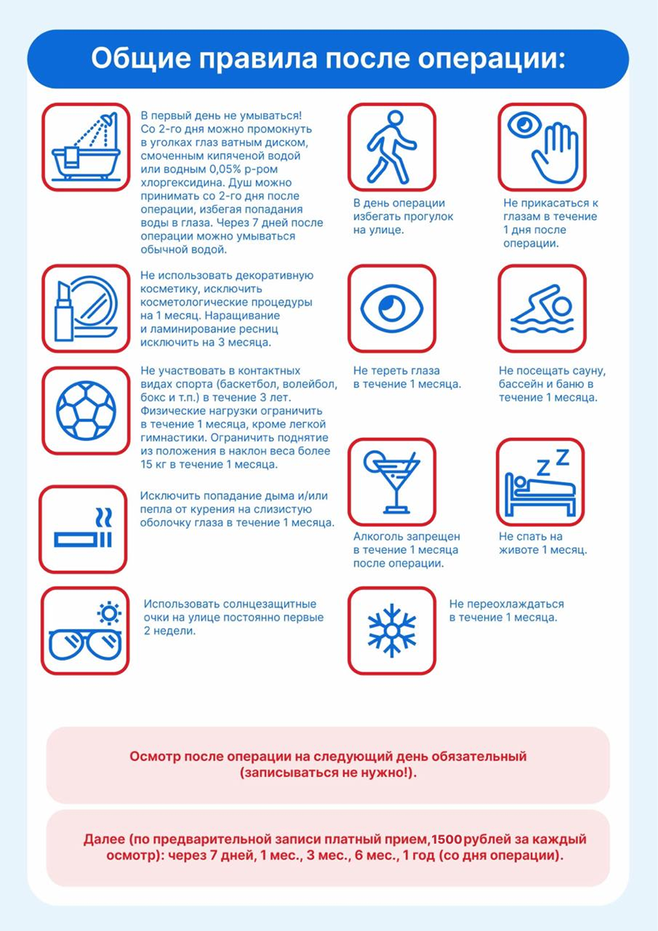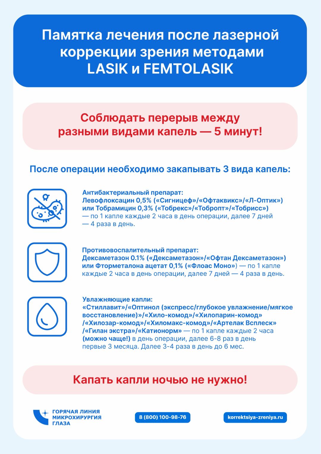 Памятка лечения после лазерной коррекции зрения методами Lasik и femtolasik